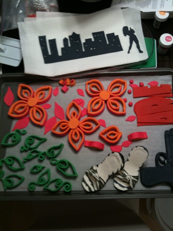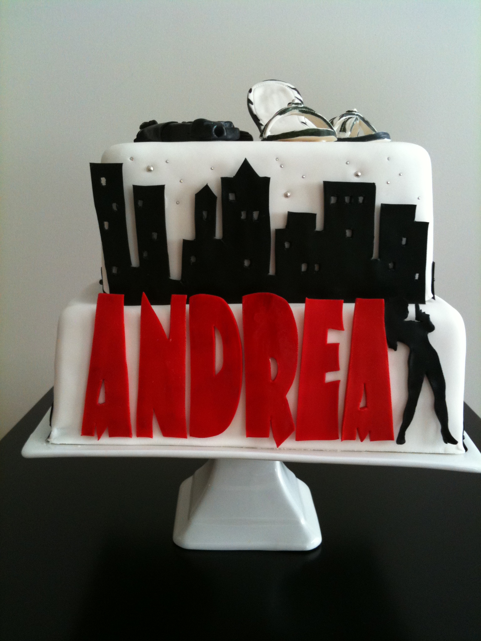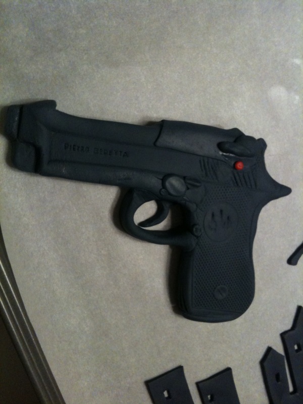 During my MBA I worked with this crazy intelligent guy named Robert. His business card (one version anyway) simply reads Bob. Clearly this man is awesome. He wanted me to make his girlfriend a birthday cake that would go with her personality and what she was currently studying for. Some type of forensic science, CIA type of thing. So we thought of making a sugar gun, some sugar stilettos, a Bond Girl and of course a cool font for her name.