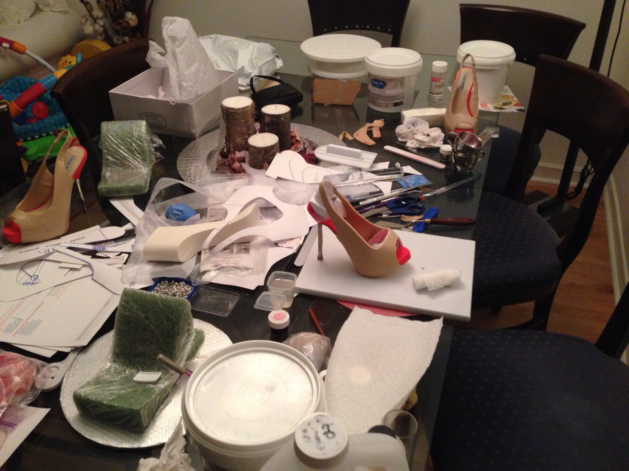 As you can see I turned my dining room table into a shoe-maker’s atelier.