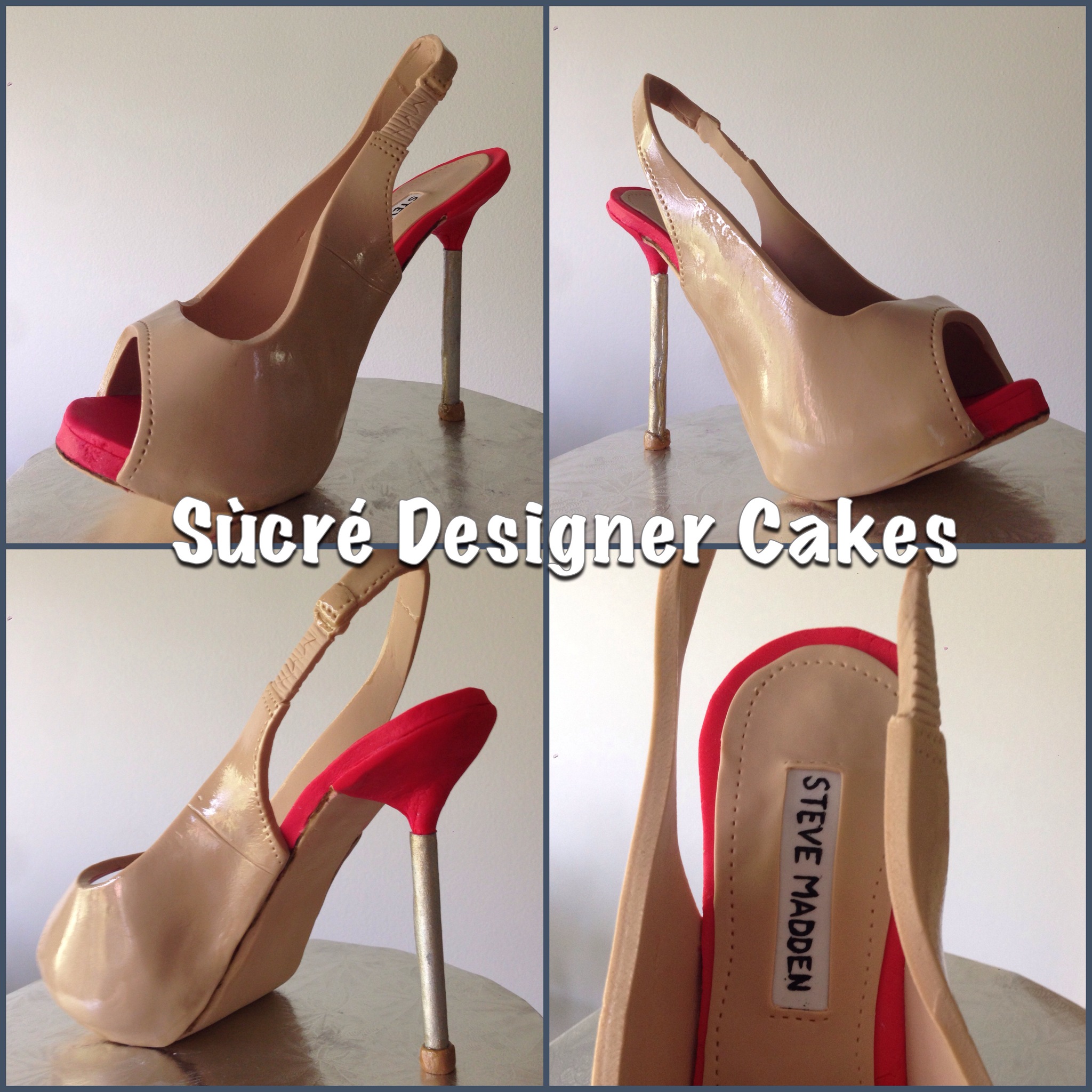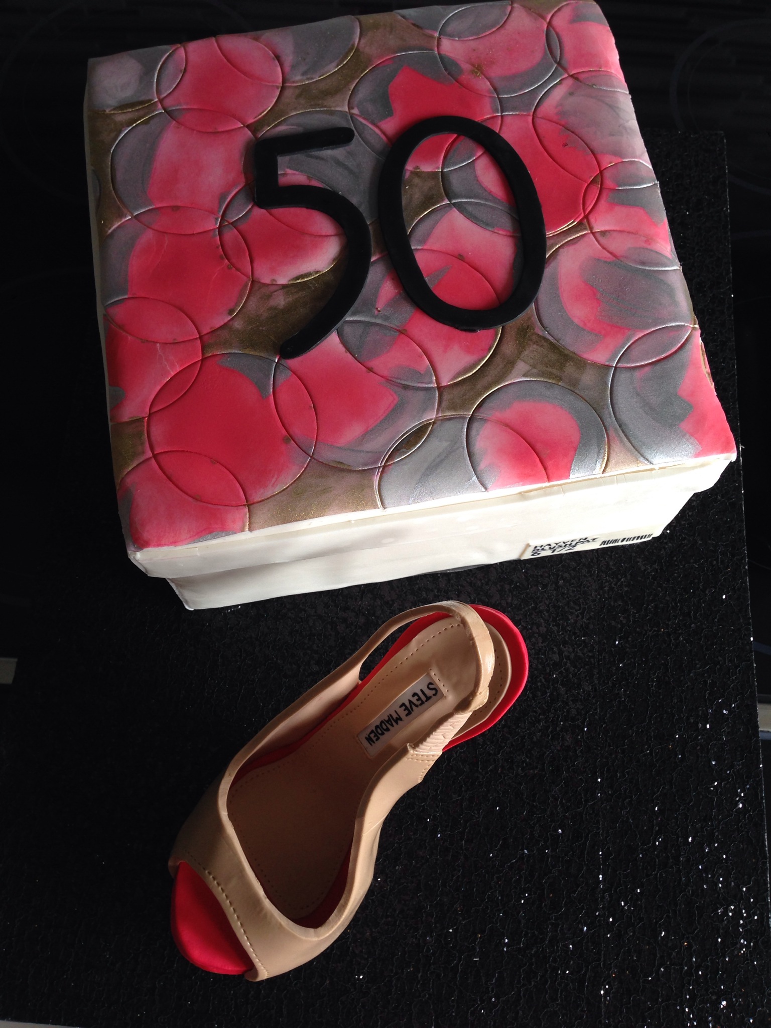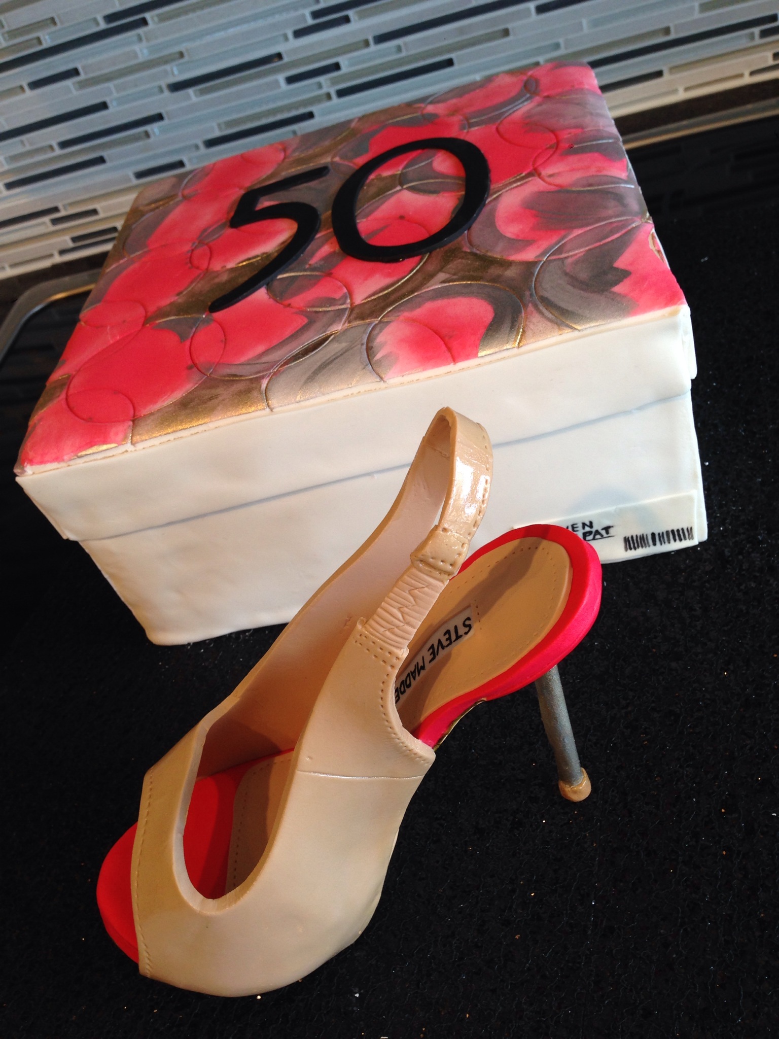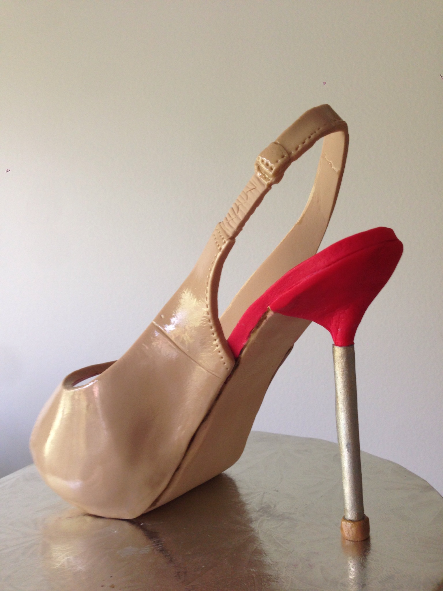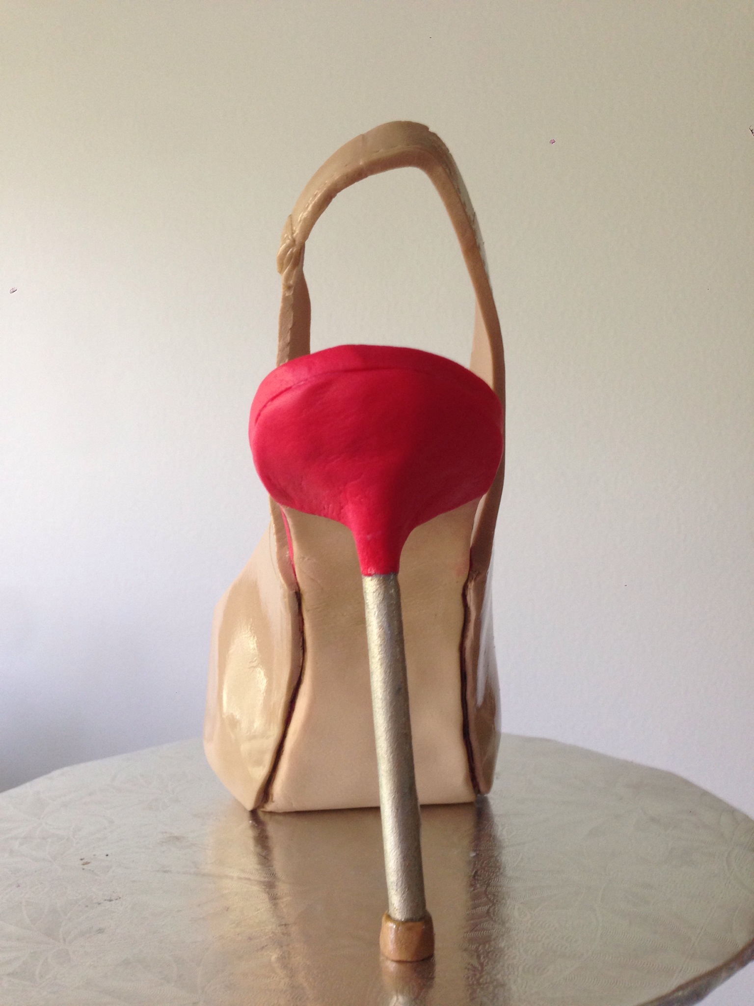 This cake featured an all-sugar shoe. I had practiced a shoe for my sister-in-law’s birthday and it turned out okay. I say okay because the strap broke – it was also a sling back pump. I made the heel by hand as I did this one. I sincerely wish I had invested in a silicone mould for the heel.