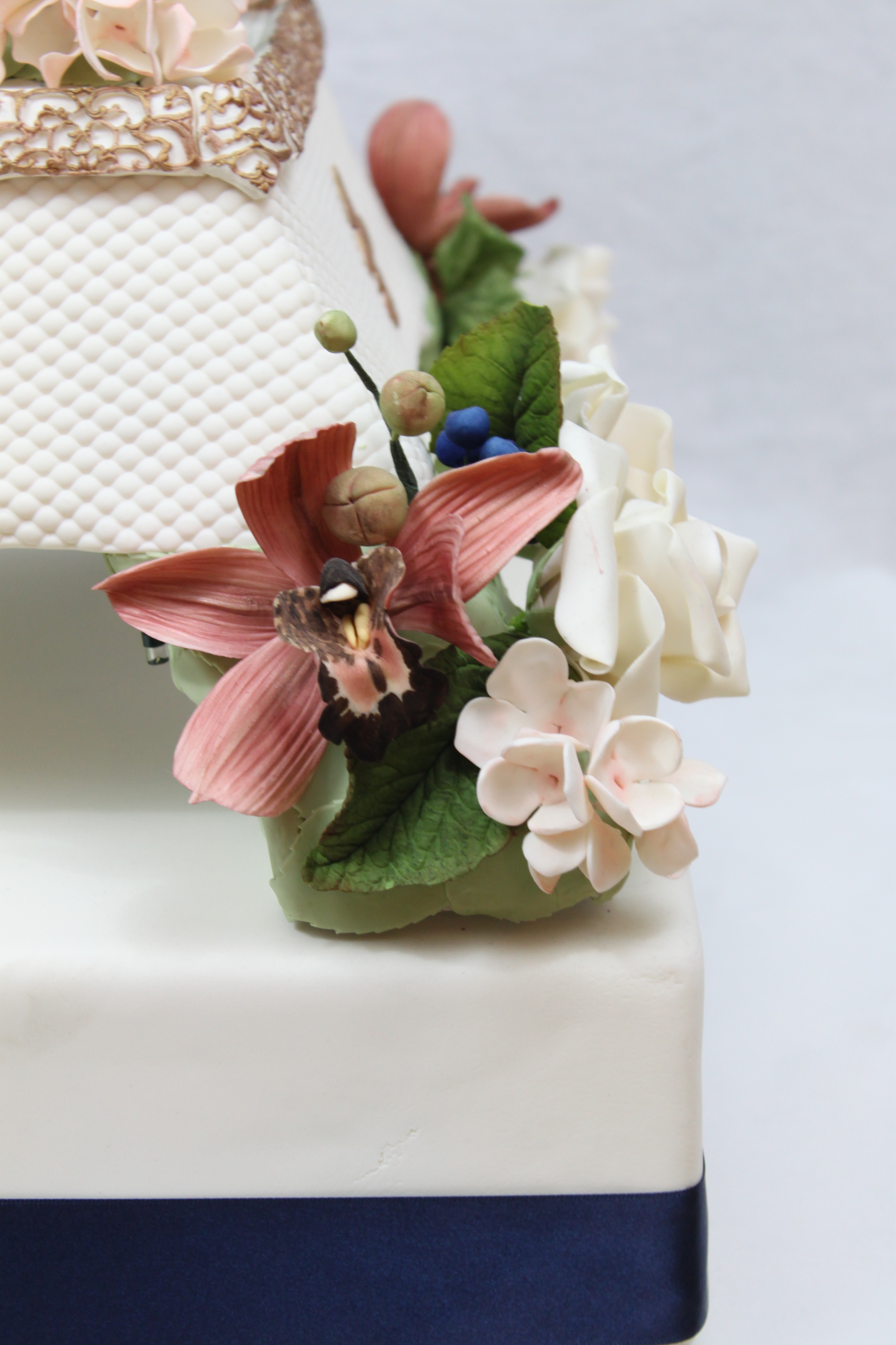The very bottom tier was chocolate Guinness cake (of course) and the rest of the cake was fake (Styrofoam). You can see this when I removed all the flowers.