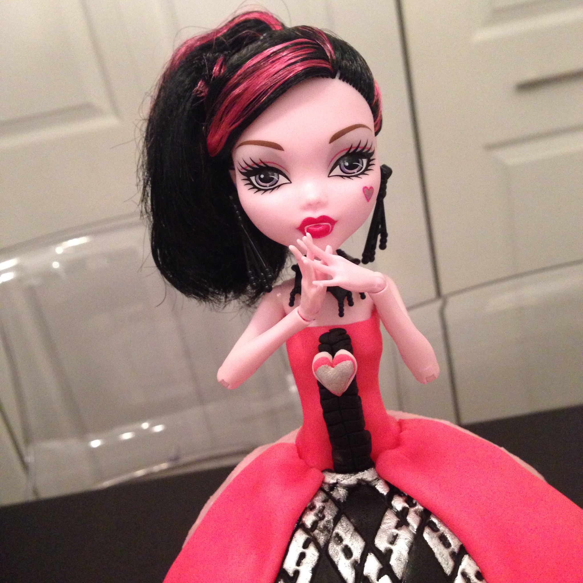 My first adventure in Monster High cakes but certainly not the last, here is Draculaura with a full cake skirt.