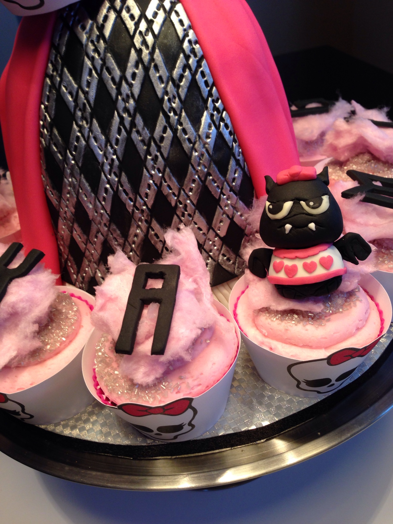 And the final setup was a breeze, I left while the girls were negotiating who would get which cupcake. Oh and the bat. What is with that grumpy bat? It’s the official grumpy bat of the Monster High world.