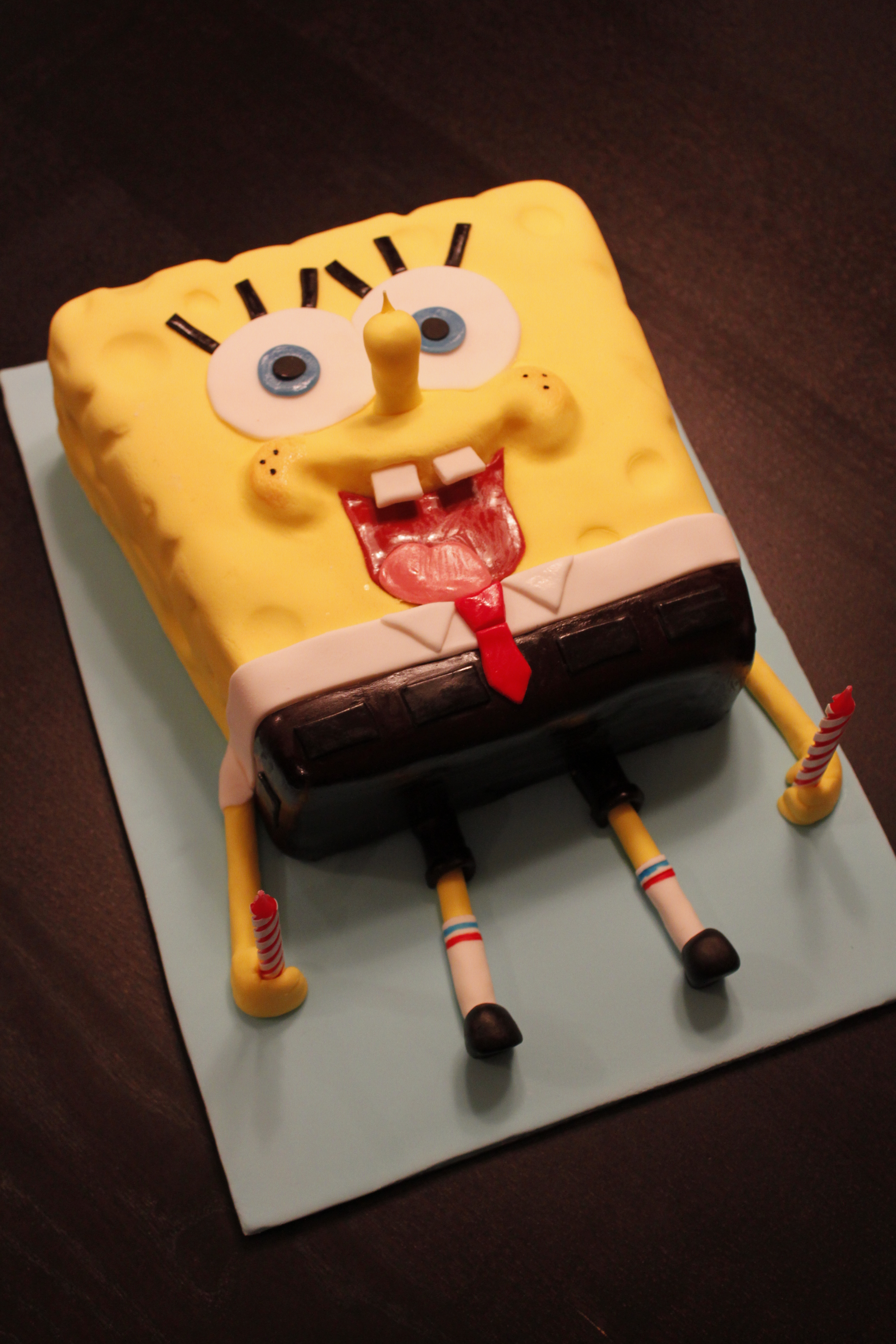 SpongeBob’s nose is also hiding a candle. It was quite a sight to see when the thing was lit. Inside is yellow sponge cake. Of course.